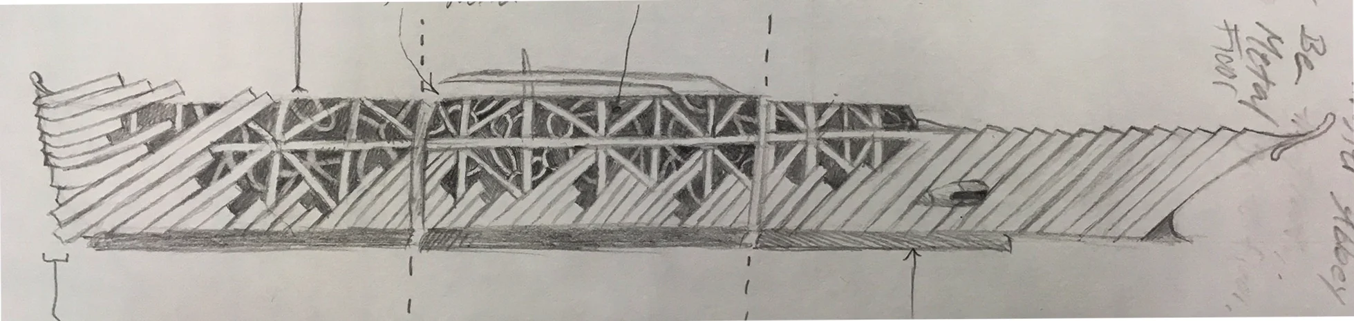 Design sketch for the trains front engine. Inspired by 1600’s British warships.