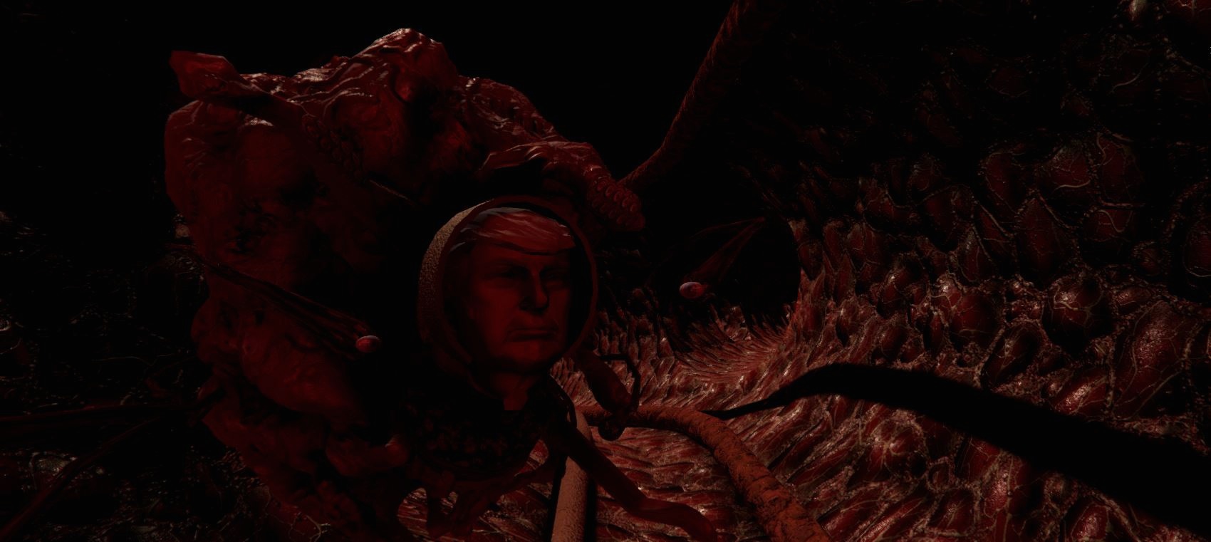 This is a collection of current work that Jake has been pursuing for his PC game, Calling Trumpette. It is both funny and serious, cultivating an essence of literal and metaphorical introspection through a political lens. It takes place inside of the lower left artery of Donald Trump. You play as a nano-bot that is cultivating minerals and changing his DNA. No political stance is directly stated, Nor does Jake take a political stance. This work should be interpreted at a subjective level.